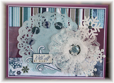 ... and a recipe challenge this week!! Charlene asks that we create a card or project with TWO PATTERNED PAPERS (manufactured or handmade), FOUR BUTTONS AND SIX LAYERS! How fun is that??!!?? (You need not use the colors from the photo unless you are inspired by them!)